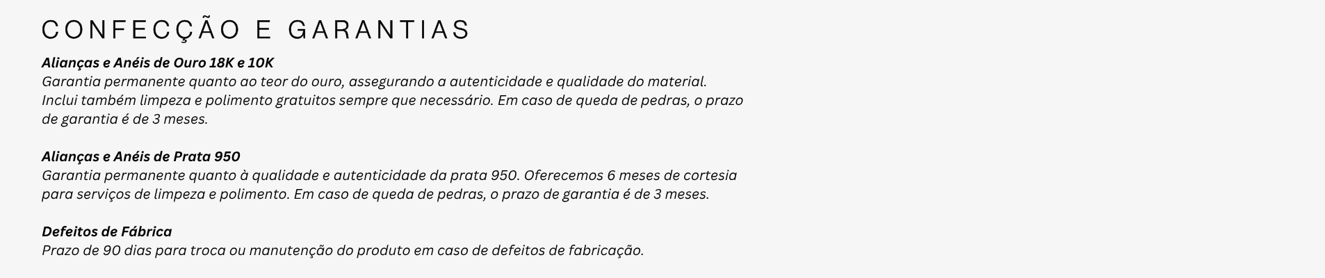 Usamos prata 950, um material nobre e durável, com 95% de pureza. Essa liga garante resistência,